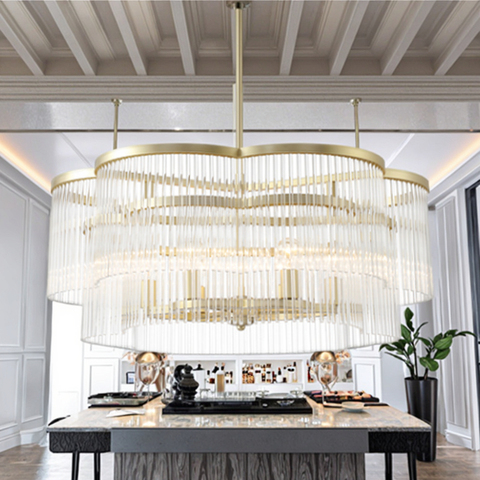 โคมไฟระย้าแอลอีดีแบบอิตาลีทันสมัยโคมไฟแขวนเพดานม้านั่งยาวโคมไฟห้องรับประทานอาหารและห้องนั่งเล่นโรงแรมและวิลล่าตกแต่งในร่ม